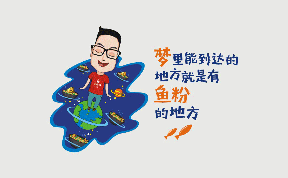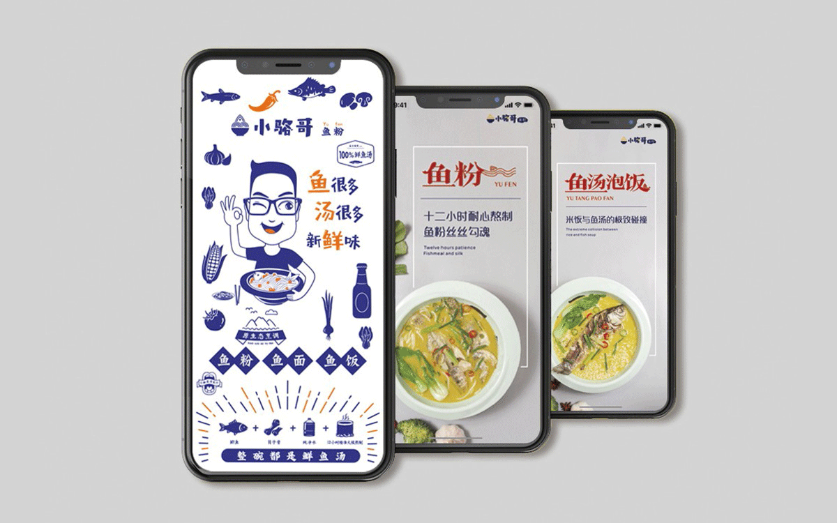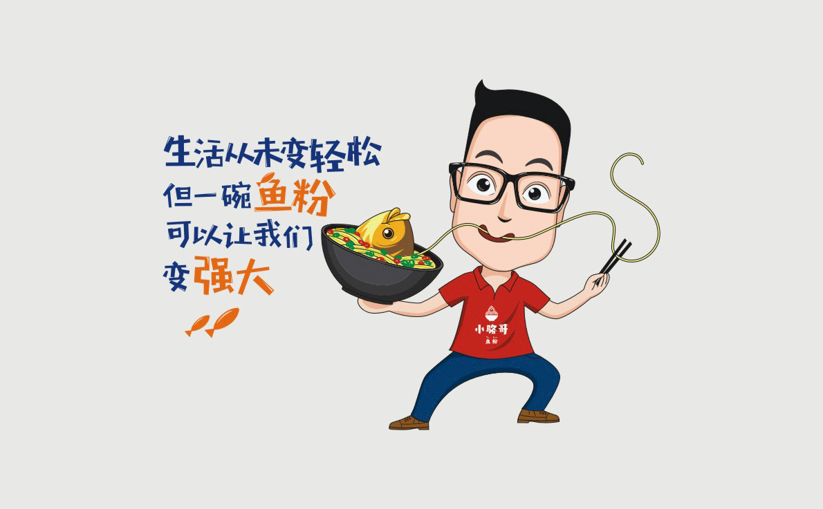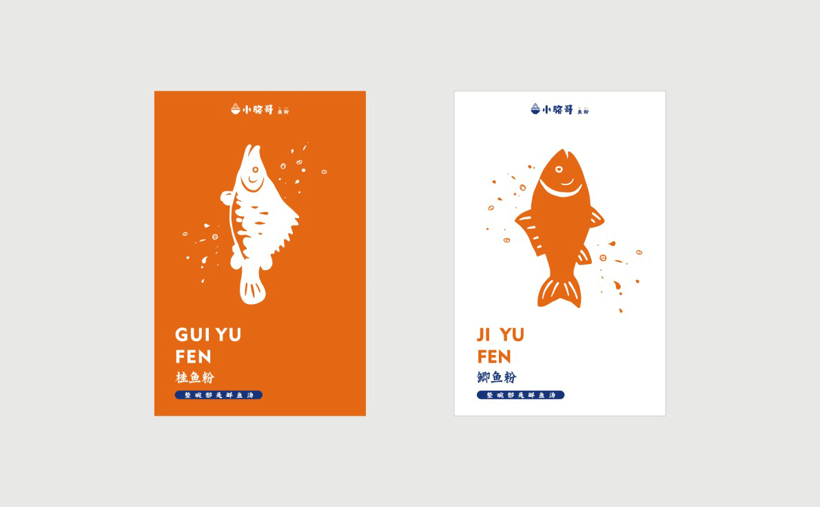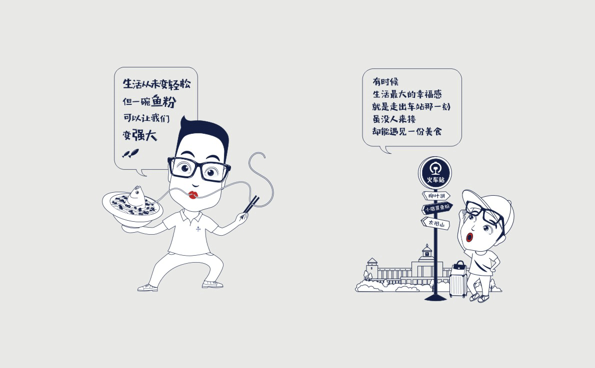 這是2018年中世銳意設(shè)計(jì)接受委托的一個小型輕食餐飲項(xiàng)目,委托人已經(jīng)在當(dāng)?shù)爻晒\(yùn)營了另一個知名度頗高的簡餐品牌——“挑香小面”,這一次重新建立全新品牌,是想拓展餐飲管理公司的產(chǎn)品范圍,并建立更加時尚的輕食品牌。小駱哥魚粉從命名開始,就自帶了濃濃的人情味,用小駱哥本人的昵稱作為品牌名,也展現(xiàn)了委托人對自己產(chǎn)品的自信。人情味與自信結(jié)合、美味與趣味融合,是我們對這個品牌最基本的創(chuàng)作思路。中世銳意設(shè)計(jì)以小駱哥本人為基本原型創(chuàng)作了系列卡通人物插畫;我們創(chuàng)作了系列關(guān)注年輕人學(xué)習(xí)、生活中內(nèi)心波瀾的小段子;我們在空間設(shè)計(jì)中嵌入魚元素的造型,讓小魚空間中游弋,使其成為品牌的超級符號;我們用原生態(tài)實(shí)木設(shè)計(jì)的戶外招牌,展現(xiàn)了濃濃的人情味; 獲得第13屆“創(chuàng)意中國”設(shè)計(jì)大獎賽全國金獎。