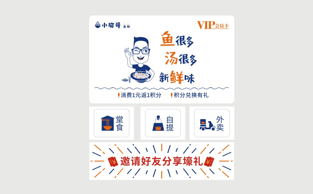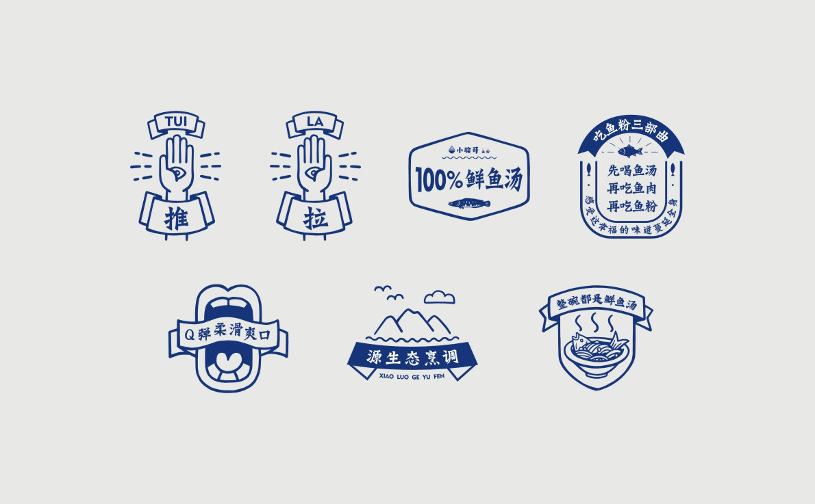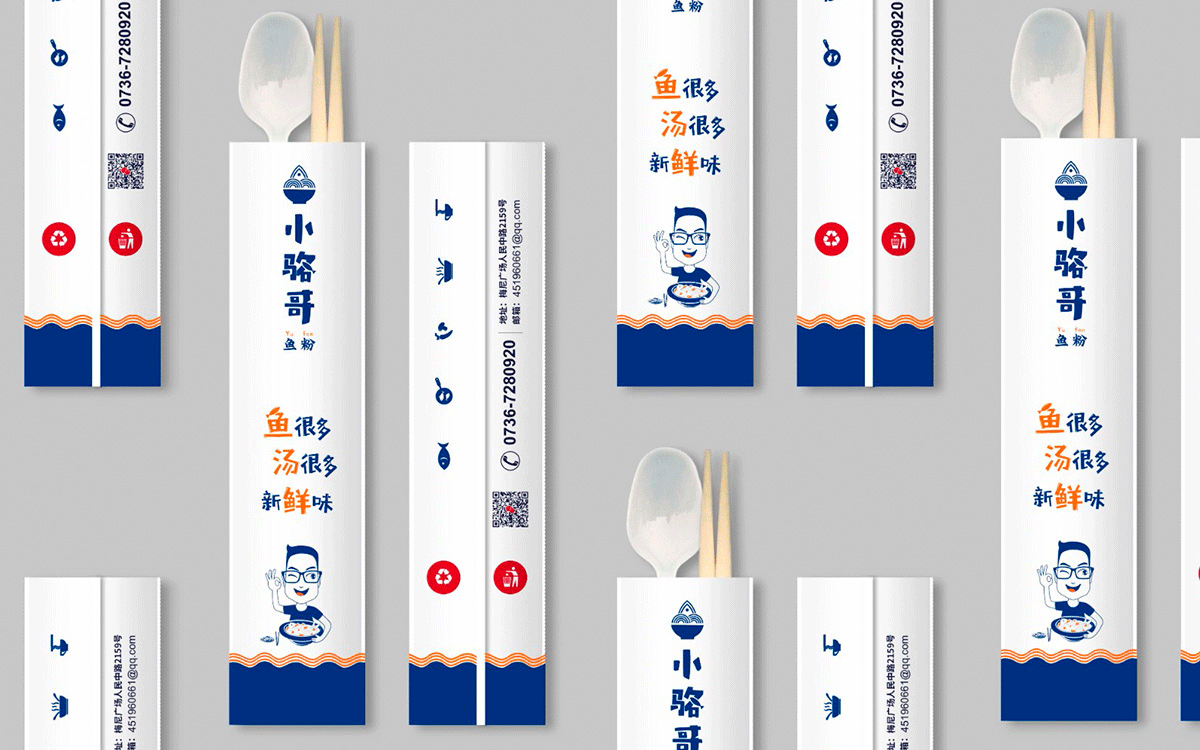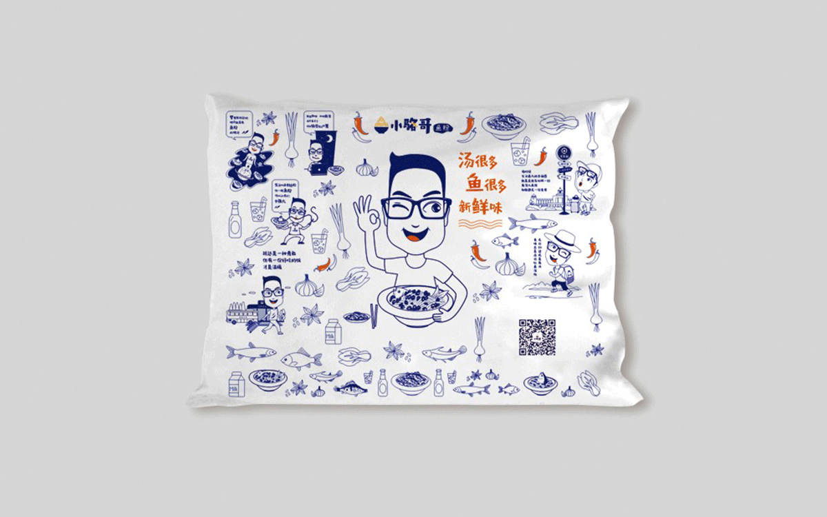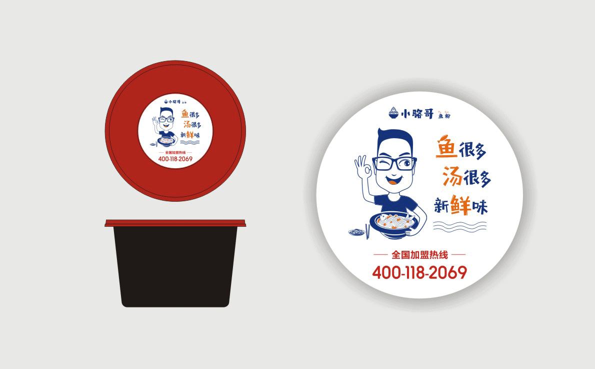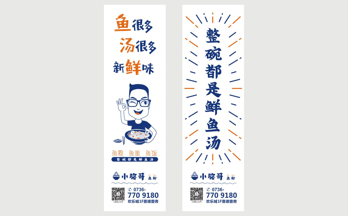 這是2018年中世銳意設(shè)計(jì)接受委托的一個小型輕食餐飲項(xiàng)目,委托人已經(jīng)在當(dāng)?shù)爻晒\(yùn)營了另一個知名度頗高的簡餐品牌——“挑香小面”,這一次重新建立全新品牌,是想拓展餐飲管理公司的產(chǎn)品范圍,并建立更加時尚的輕食品牌。小駱哥魚粉從命名開始,就自帶了濃濃的人情味,用小駱哥本人的昵稱作為品牌名,也展現(xiàn)了委托人對自己產(chǎn)品的自信。人情味與自信結(jié)合、美味與趣味融合,是我們對這個品牌最基本的創(chuàng)作思路。中世銳意設(shè)計(jì)以小駱哥本人為基本原型創(chuàng)作了系列卡通人物插畫;我們創(chuàng)作了系列關(guān)注年輕人學(xué)習(xí)、生活中內(nèi)心波瀾的小段子;我們在空間設(shè)計(jì)中嵌入魚元素的造型,讓小魚空間中游弋,使其成為品牌的超級符號;我們用原生態(tài)實(shí)木設(shè)計(jì)的戶外招牌,展現(xiàn)了濃濃的人情味; 獲得第13屆“創(chuàng)意中國”設(shè)計(jì)大獎賽全國金獎。