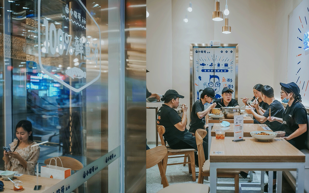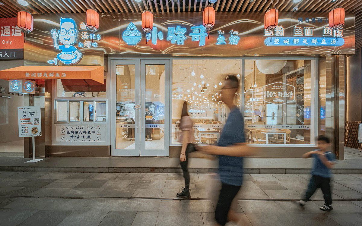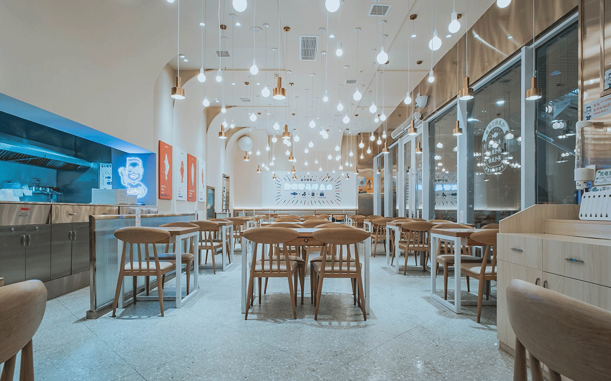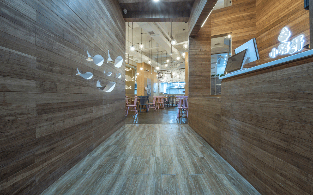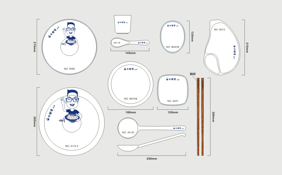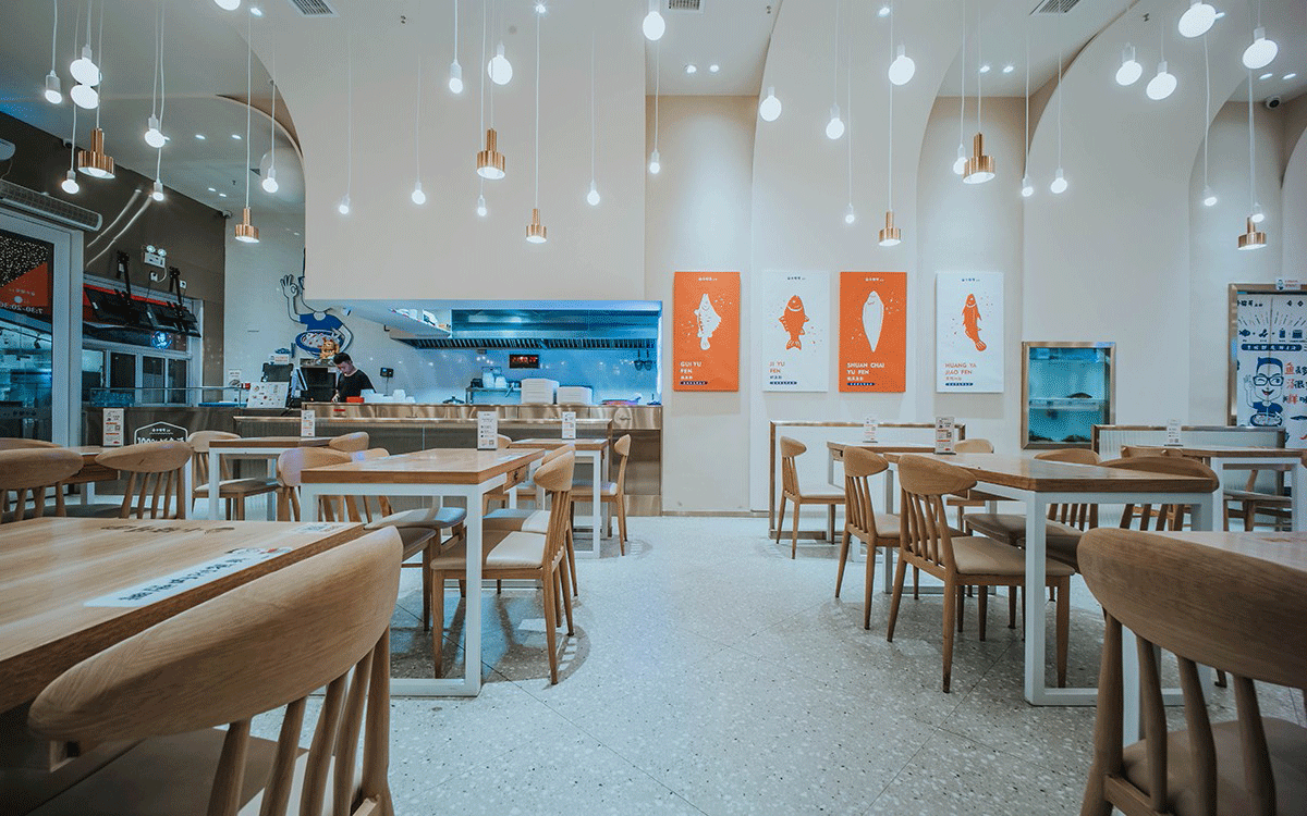 這是2018年中世銳意設(shè)計(jì)接受委托的一個小型輕食餐飲項(xiàng)目,委托人已經(jīng)在當(dāng)?shù)爻晒\(yùn)營了另一個知名度頗高的簡餐品牌——“挑香小面”,這一次重新建立全新品牌,是想拓展餐飲管理公司的產(chǎn)品范圍,并建立更加時尚的輕食品牌。小駱哥魚粉從命名開始,就自帶了濃濃的人情味,用小駱哥本人的昵稱作為品牌名,也展現(xiàn)了委托人對自己產(chǎn)品的自信。人情味與自信結(jié)合、美味與趣味融合,是我們對這個品牌最基本的創(chuàng)作思路。中世銳意設(shè)計(jì)以小駱哥本人為基本原型創(chuàng)作了系列卡通人物插畫;我們創(chuàng)作了系列關(guān)注年輕人學(xué)習(xí)、生活中內(nèi)心波瀾的小段子;我們在空間設(shè)計(jì)中嵌入魚元素的造型,讓小魚空間中游弋,使其成為品牌的超級符號;我們用原生態(tài)實(shí)木設(shè)計(jì)的戶外招牌,展現(xiàn)了濃濃的人情味; 獲得第13屆“創(chuàng)意中國”設(shè)計(jì)大獎賽全國金獎。