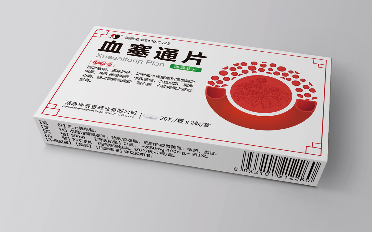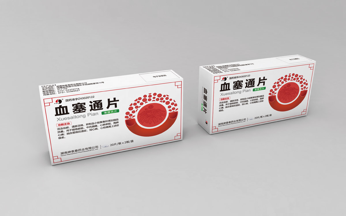 中世銳意設(shè)計為紳泰春藥業(yè)策劃設(shè)計“血塞通片”藥品包裝。