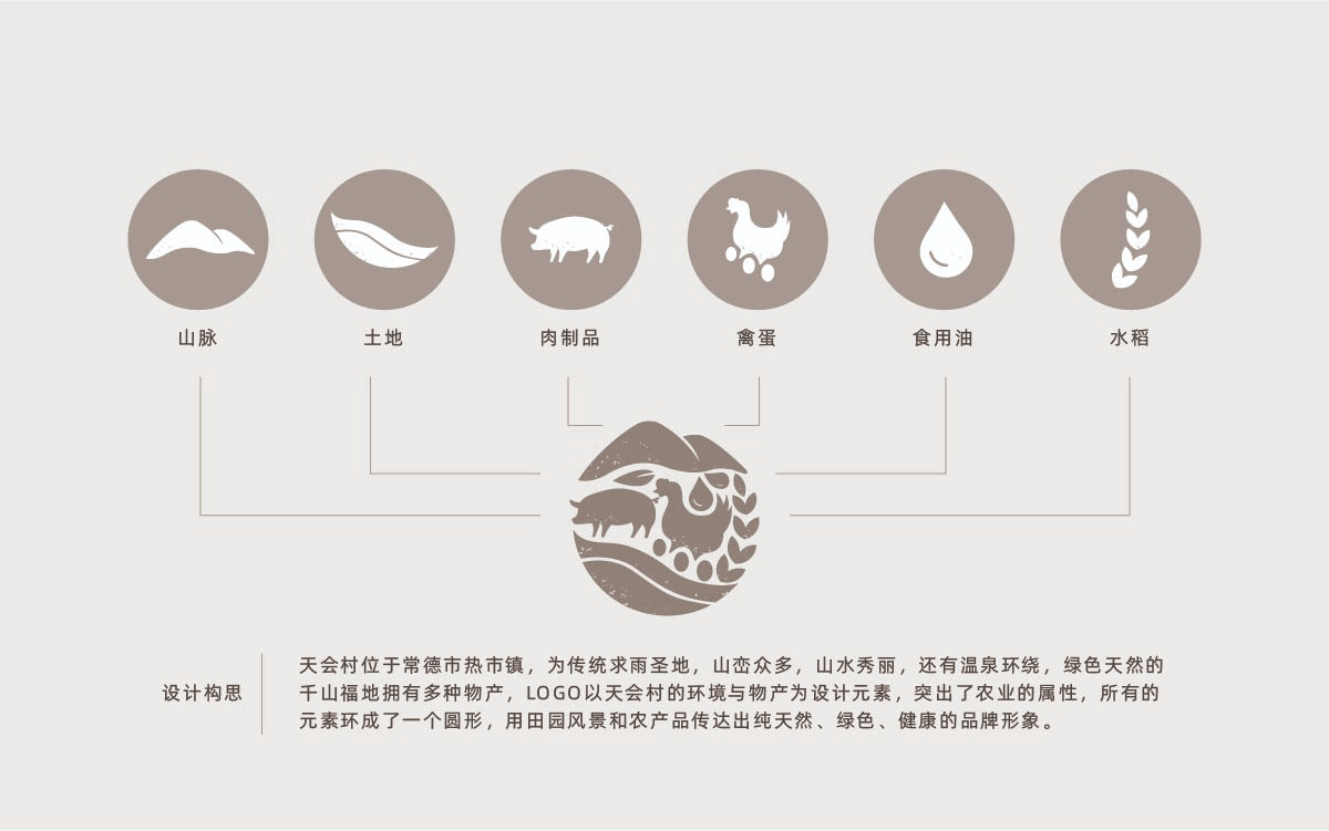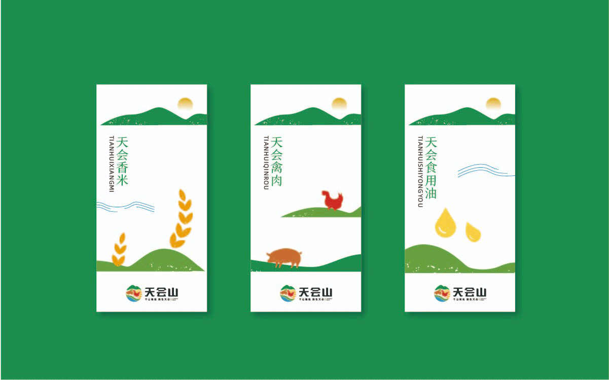 桃源縣湘興種養(yǎng)專業(yè)合作社,位于天會(huì)村,下設(shè)“天會(huì)山”品牌,預(yù)計(jì)出產(chǎn)大米、食用油、禽肉等優(yōu)質(zhì)農(nóng)產(chǎn)品。產(chǎn)品出產(chǎn)地在湖南省桃源縣熱市鎮(zhèn),此地為傳統(tǒng)求雨圣地,山水秀麗,丘陵山頭眾多,素有“千頭山”美稱。品牌形象以天會(huì)村的環(huán)境與物產(chǎn)為設(shè)計(jì)元素,突出了農(nóng)業(yè)的屬性,用田園風(fēng)景和農(nóng)產(chǎn)品傳達(dá)出純天然、綠色、健康的品牌形象。